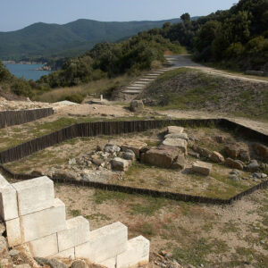 In the heart of Ancient Stagira’s Agora, a symposium takes place on the historic podium where Greeks once gathered to discuss politics, governance, human values,